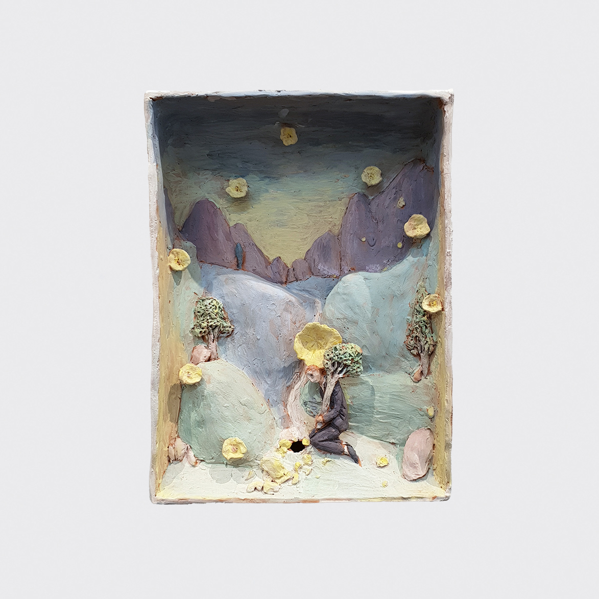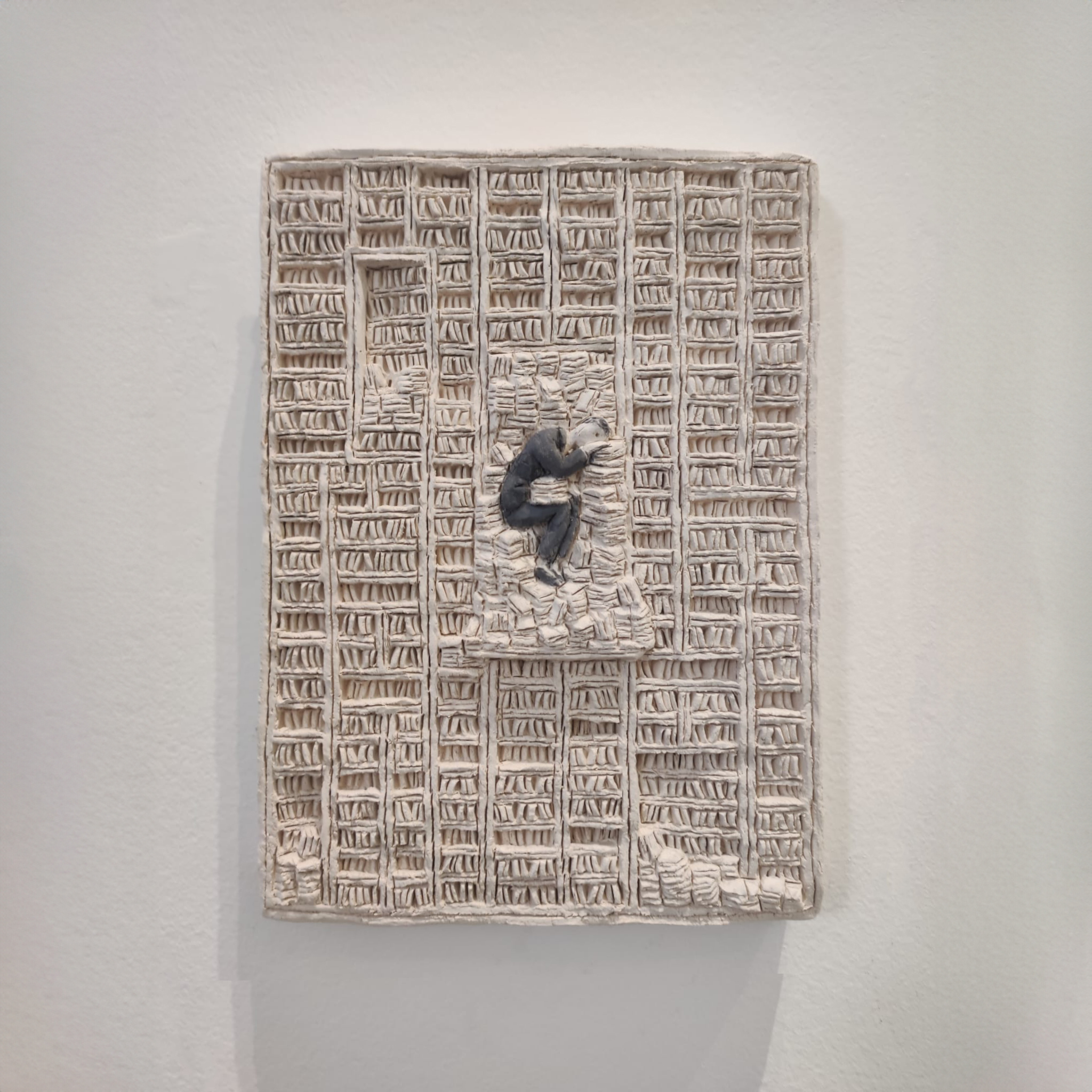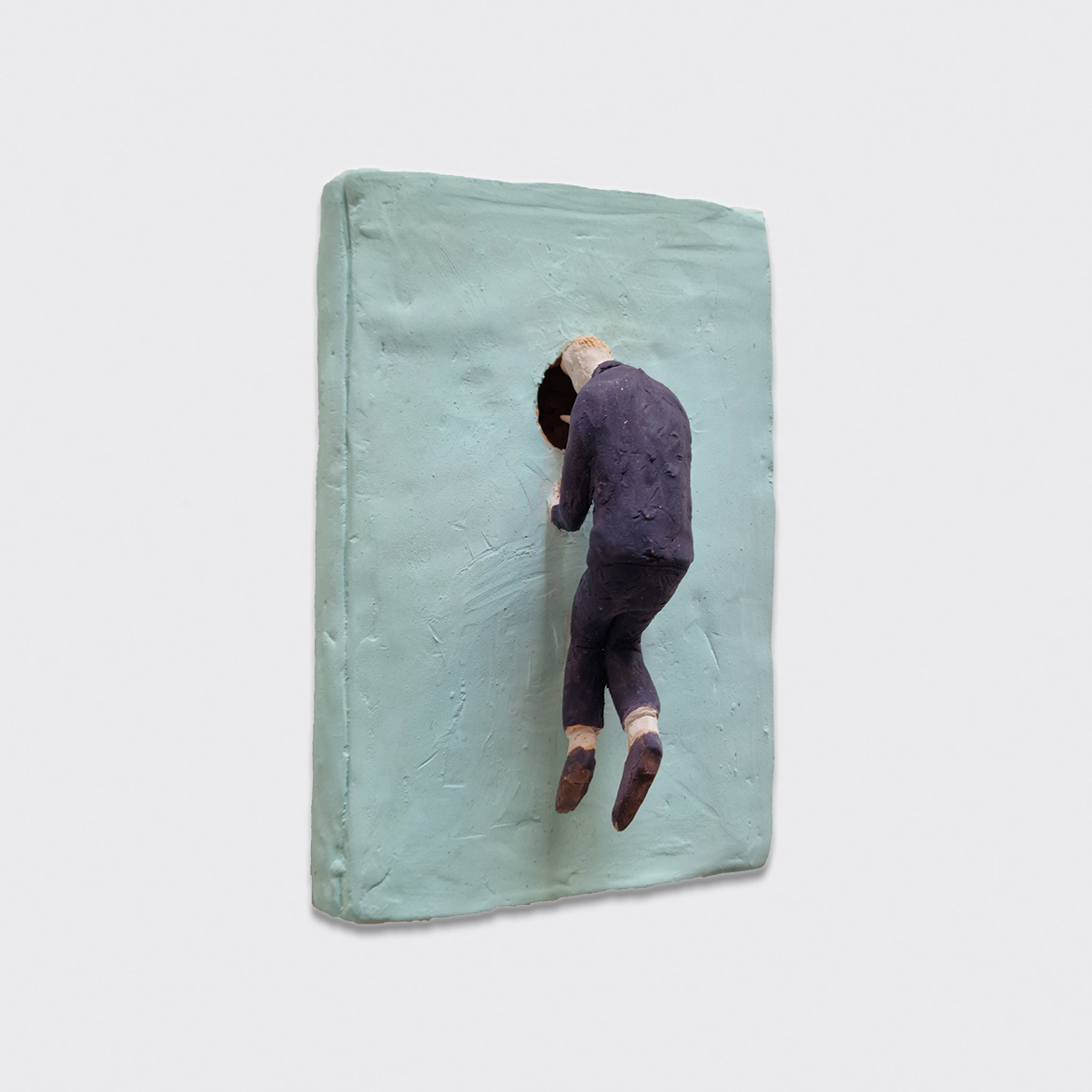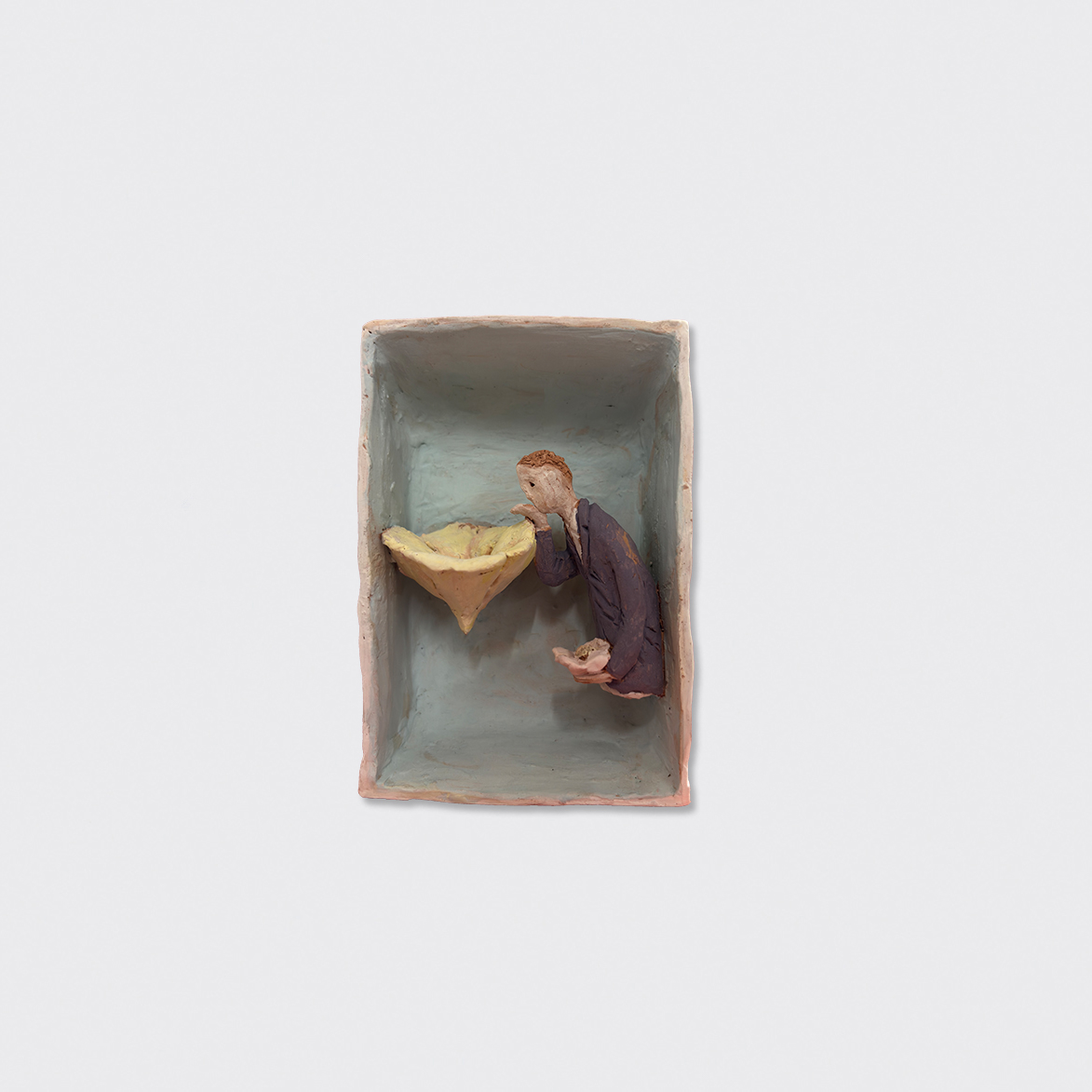 The first sculptures were exhibited at the former Silo del Cacao da Cargo (Milan) and presented by Alessandro Riva; subsequently, at Galleria Narciso in Turin and Galleria Klerkx in Milan. Since then, Deodato has been working almost exclusively with sculpture, a language through which the artist is sure to express himself more effectively. As a result, the same characters in painting become more real in sculpture, gaining form and depth and fitting into the figurative space with a greater force. In the end, sculpture and clay play a central role, coming full circle: it is a return to the past, to the Art School and to the artist’s childhood in Calabria.