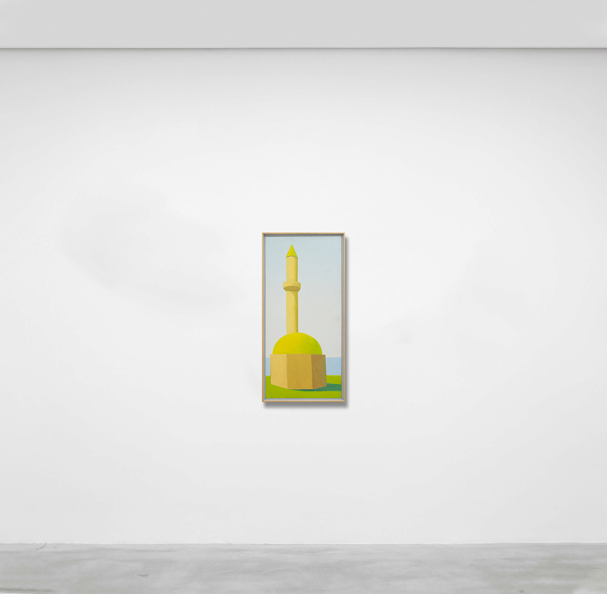 In the summer of 1984, Maurizio Calvesi invited Salvo to “Arte allo specchio” at the 41st Venice Biennale: he showed six works, including San Martino e il povero, Il bar, made in 1981, and a painting from the cycle Rovine dated to 1984. Upon returning from a long trip to Greece, Yugoslavia, and Turkey, he painted the mishram, typical Muslim graves he visited in Sarajevo. This theme, introduced by Franco Toselli, will be followed by Ottomanie (a neologism coined by Salvo), variants of the previous landscapes that feature minarets, which are portrayed to reveal the essentiality of their architecture.